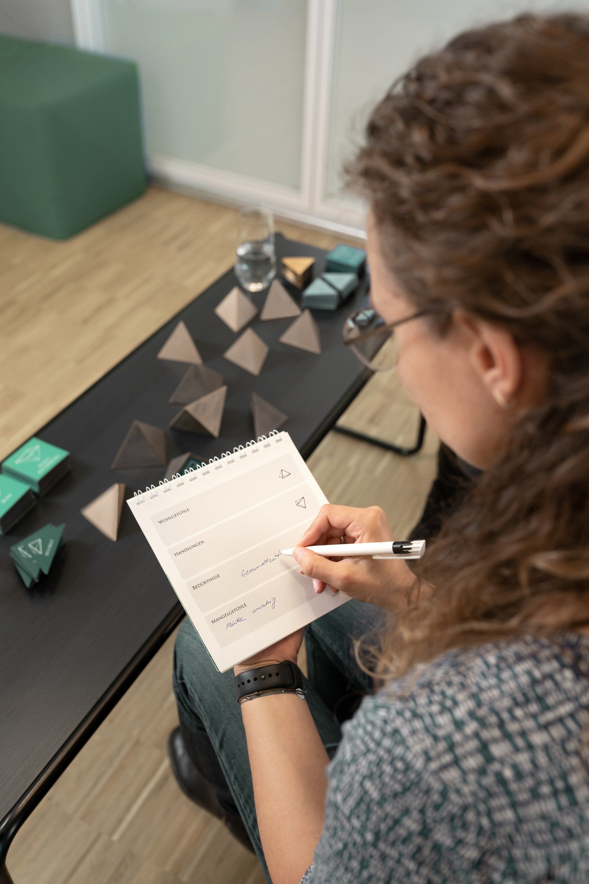 Notizblöcke, Arbeitsblätter, Methodencharts und Anleitungen dienen als Hilfsmittel zum Verständnis und zur Prozessdokumentation. Sie können auf Nachfrage separat (nach-)bestellt werden.